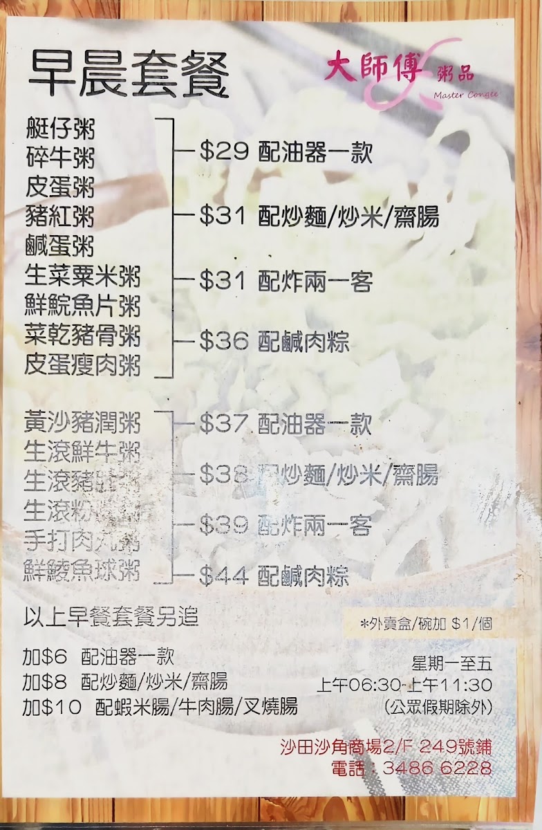 Master Congee, nestled in Sha Kok Commercial Complex, offers a quintessential Cantonese porridge experience that delights with simplicity and well-crafted flavors. Their menu shines with hearty congee options like the Boat Congee, rich with minced beef, soaked squid, and fried peanuts, and the Congee with Dried White Cabbage and Pork Bone, which perfectly balances savory depth and silky texture. Highlighting freshness and generous portions, the Yam Pork Liver Congee and Pork Stomach Congee stand out for their clean taste and satisfying chunks of meat. Complementing the congee are crispy, golden deep-fried snacks such as the Ox’s Tongue Pastry and the savory Fried Doughnut, which add a perfect crunch to the comforting dishes. Steamed rice rolls with BBQ pork or dried shrimps bring a silky, flavorful contrast. Master Congee’s setting is casual yet comfortable, inviting diners to savor Hong Kong’s beloved porridge culture with authentic, protein-rich, and well-balanced plates.